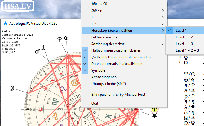 2. Для рассмотрения трёх карт, указываем: Level 1+2+3, где 1 уровень - радиксные карты, 2 уровень - дирекционные карты и 3 уровень - транзиты и т.п.