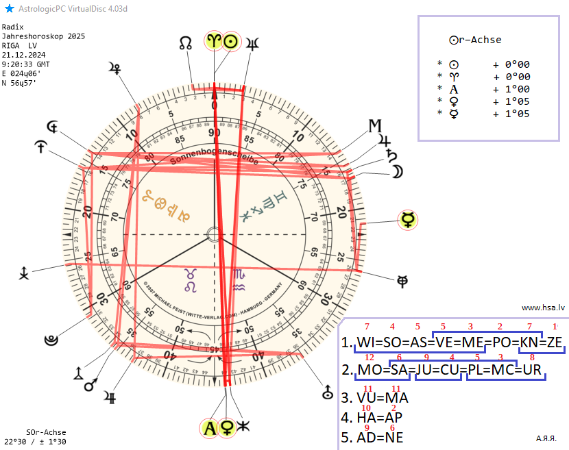 Вывод: в 2025 могут произойти изменения в финансовой сфере и финансовых объединениях. Также это равенство касается вопросов юридических и правовых. Здесь также могут произойти ротации и изменения, включая неожиданные или связанные с введением новых методов и/или технологий. Имидж Риги/Латвии может претерпеть изменения. Возможно, это может быть связано и с предстоящими выборами в городское управление и конкуренцией между партиями. Здесь могут быть неожиданности.