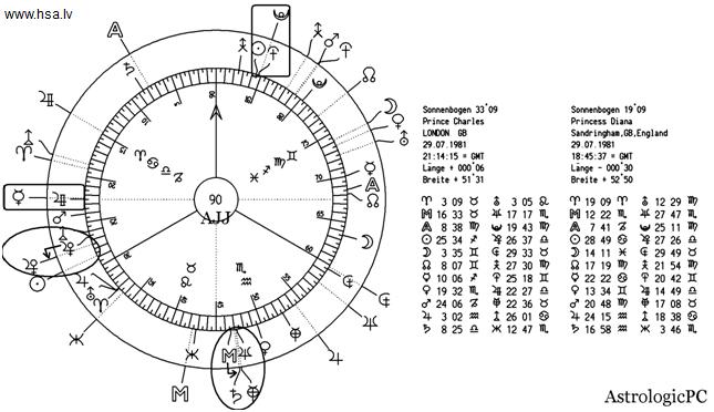 - Приближение Аполлона гороскопа СД принца Чарльза к Меркурию гороскопа СД принцессы Дианы;