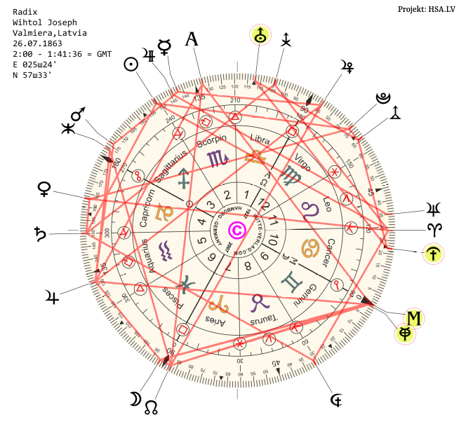Кроме того, МС=UR указывает на неожиданное/немногим преждевременное рождение И.Витола, когда его родители гостили у родственников. Отсюда, можно предположить, что время рождения в метрике указано корректно.