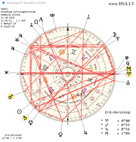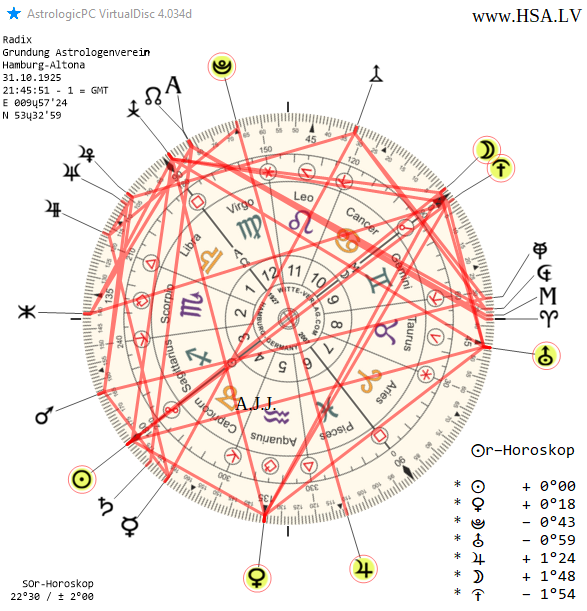 Теперь, имея на руках уточнённые данные, мы можем составить и более точный гороскоп на момент основания Общества астрологов «Гамбургская школа». Это особенно интересно тем, кто любит предельную точность вплоть до секунд. Заодно можно проанализировать, что это меняет или не меняет уже для составления астрологических прогнозов.